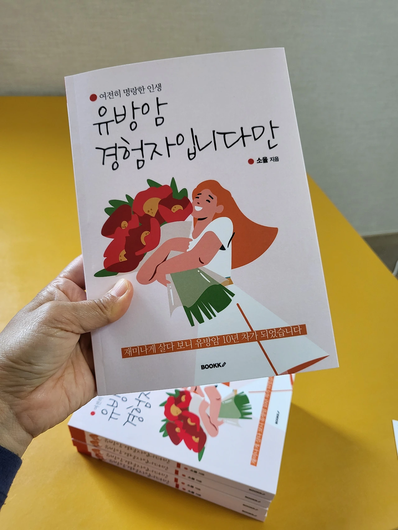 나의 셋째 <유방암 경험자입니다만>이 집에 배송되었다. 부크크에서 출간 승인을 받은 건 5월 9일. 그래서 발행 날짜도 5월 9일. 주문한 건 11일이니까 열흘 만에 도착한 것이다. 인쇄와 배송까지 보통 1주일이라던데 아마 제주도라서 며칠 더 걸린 듯. 마침 나가는 길에 책이 온 걸 발견했다. 급하게 뜯어서 대충 살펴본 뒤, 일단 차에 탔다. 볼 일 보고 돌아와서 자세히 보기로.
