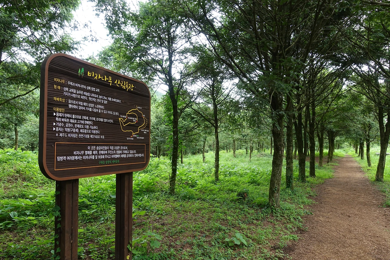 오름으로 향하는 길은 비자나무숲에서 시작한다. 동그랗고 통통한 녹색 열매가 조롱조롱. 비자나무 열매는 처음 본다. 송당리 주민들이 직접 조림한 곳으로 비자나무 열매를 채취, 판매한다고 적혀 있다. 제주도 곳곳에서 종종 지역 주민들이 만든 숲길을 발견한다. 멋진 길을 만들어 주셔서 감사합니다. 진심입니다.