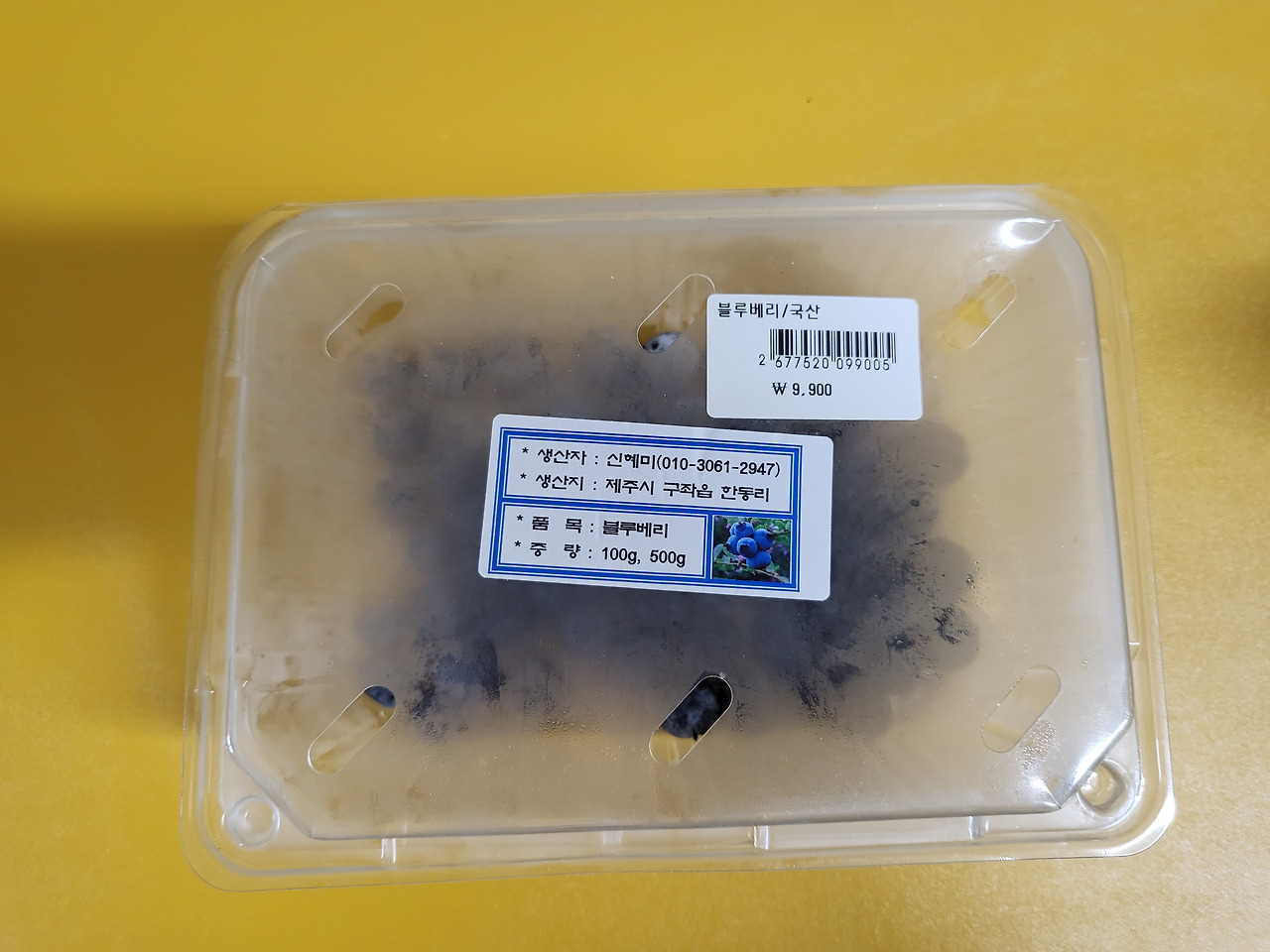 또 삼천포로 빠졌다. 제주도 농장으로 돌아가세. 나는 농장에서 블루베리를 사지 못한 것이 아쉬웠지만 실망하기엔 일렀다. 하나로마트에서 제주산 블루베리를 파니까. 그것도 옆 동네 한동리 산. 이거야말로 찐 로컬푸드 아닌가. 블루베리 500g의 가격이 만 오천 원에서 만 원으로 다시 칠천 원으로 떨어졌다. 그러다 도로 만 원에 정착했다.