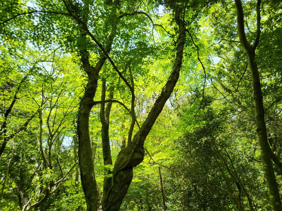나는 구름에 붕 뜬 기분으로 숲을 걸었다. 새로 돋아난 연두색 풀과 나뭇잎이 반짝반짝 빛이 났다. 나는 살짝 취해 동화 속을 걷는 느낌이었다. 솜털에 쌓여 도르르 말린 관중이 귀여웠다. 독을 가졌다는 천남성조차 기특했다. 보라색 야생화, 나무를 타고 올라가는 송악과 마삭줄까지 신기하지 않은 것이 없었다.