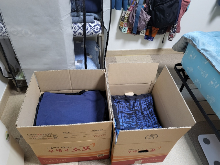 어제 우체국에 가서 박스를 몇 개 사 왔다. 다행히 다음 주까지 날씨는 따뜻할 예정이다. 당장 입을 가을 옷 몇 장만 빼놓았다. 다른 옷들은 모두 박스에 담아 택배로 부쳤다. 재활용 쓰레기와 일반 쓰레기도 갖다 버렸다. 며칠 전부터 이불을 하나씩 빨아놓고 있다.