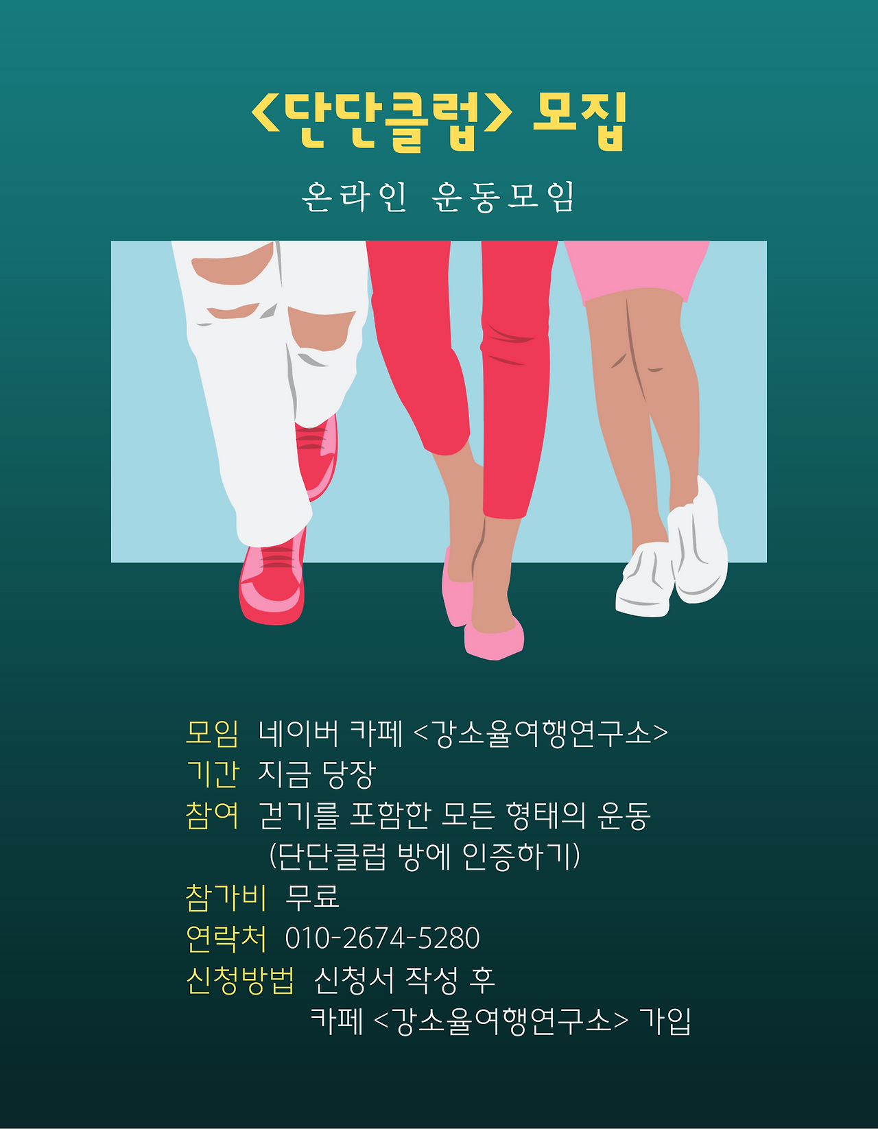 강소율여행연구소의 운동 프로그램. 각자 운동을 하고 함께 인증합니다. 여성분만 가능합니다.