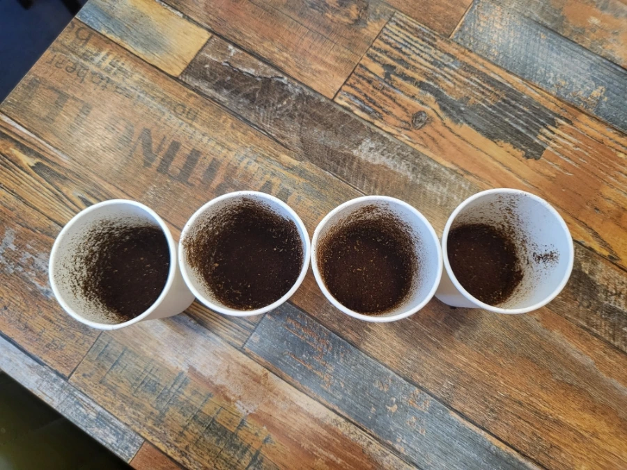 선생님은 미디엄부터 점점 진해지는 다크까지 네 단계로 볶으라 명하셨지요. 우리 팀은 대충 네 단계를 맞추었어요. 확실히 옅은 색깔의 원두에선 은근한 신 향이 나고 가장 어두운 색에선 압도적인 고소함이 흘러나오더라고요. 하지만 지나치게 볶으면 너무 써지겠지요?