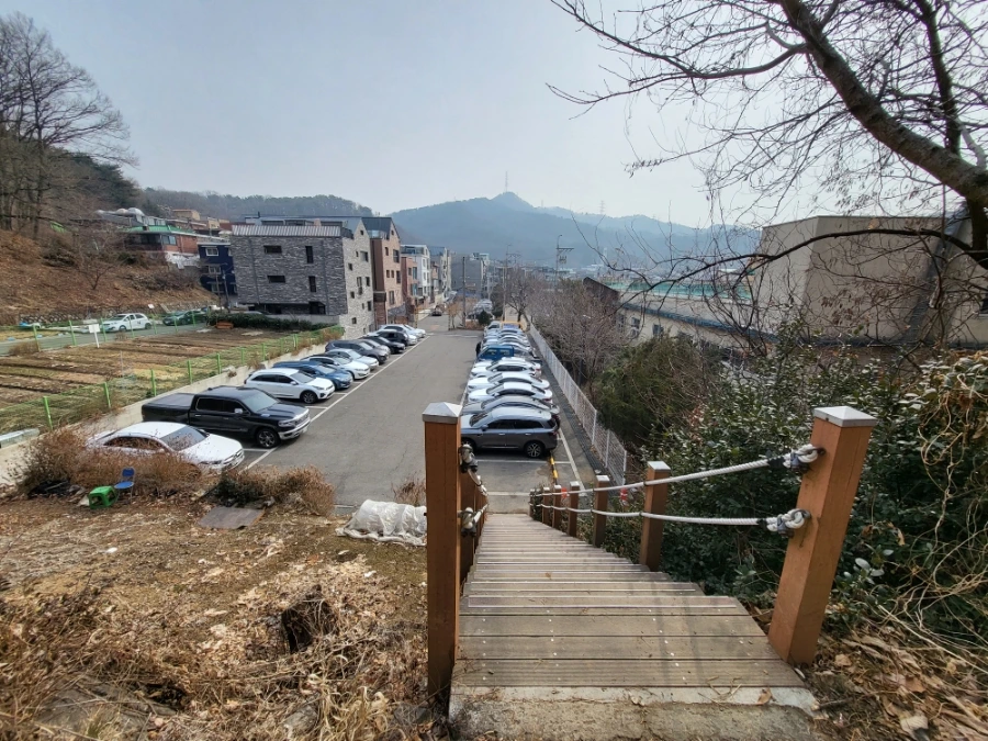 오르막을 지나 계단 아래로 주차장과 동네가 자리합니다. 여기서 저희 집까지 걸어서 5분. 28년 차 현지인과 함께한 서울대공원 산책 어떠셨나요? 즐거우셨나요?^^