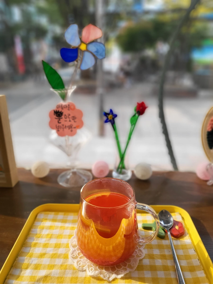 일이 있어 돌아다니다가 좀 쉬려고 카페에 갔을 때, 유독 커피의 유혹이 강했다. 휴식과 커피는 서로 끌어당기는 자력이 있다. 머리에 새겨진 이미지도 몸에 익숙한 입맛도 커피가 딱이지 않은가. 물론 커피 외에 대안은 많았다. 과일차와 허브차가 있으니까요. 나는 주로 자몽차, 레몬차 등을 주문했다.