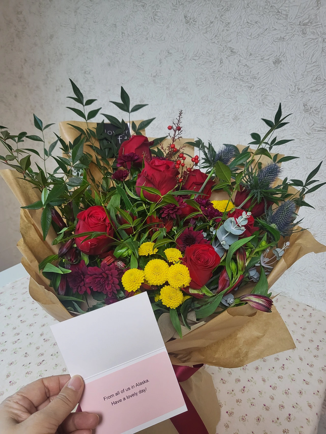 미국에서 또 꽃다발이 왔다. 받는 사람에 내 이름, 보내는 사람 주소지는 알래스카. 아무 날도 아닌데 아들이 비싼 꽃다발을 보냈을 리가 없다. 사돈이 또 보냈나?? 작년 미국 어머니날에도 사돈에게서 커다란 꽃다발을 받았다.