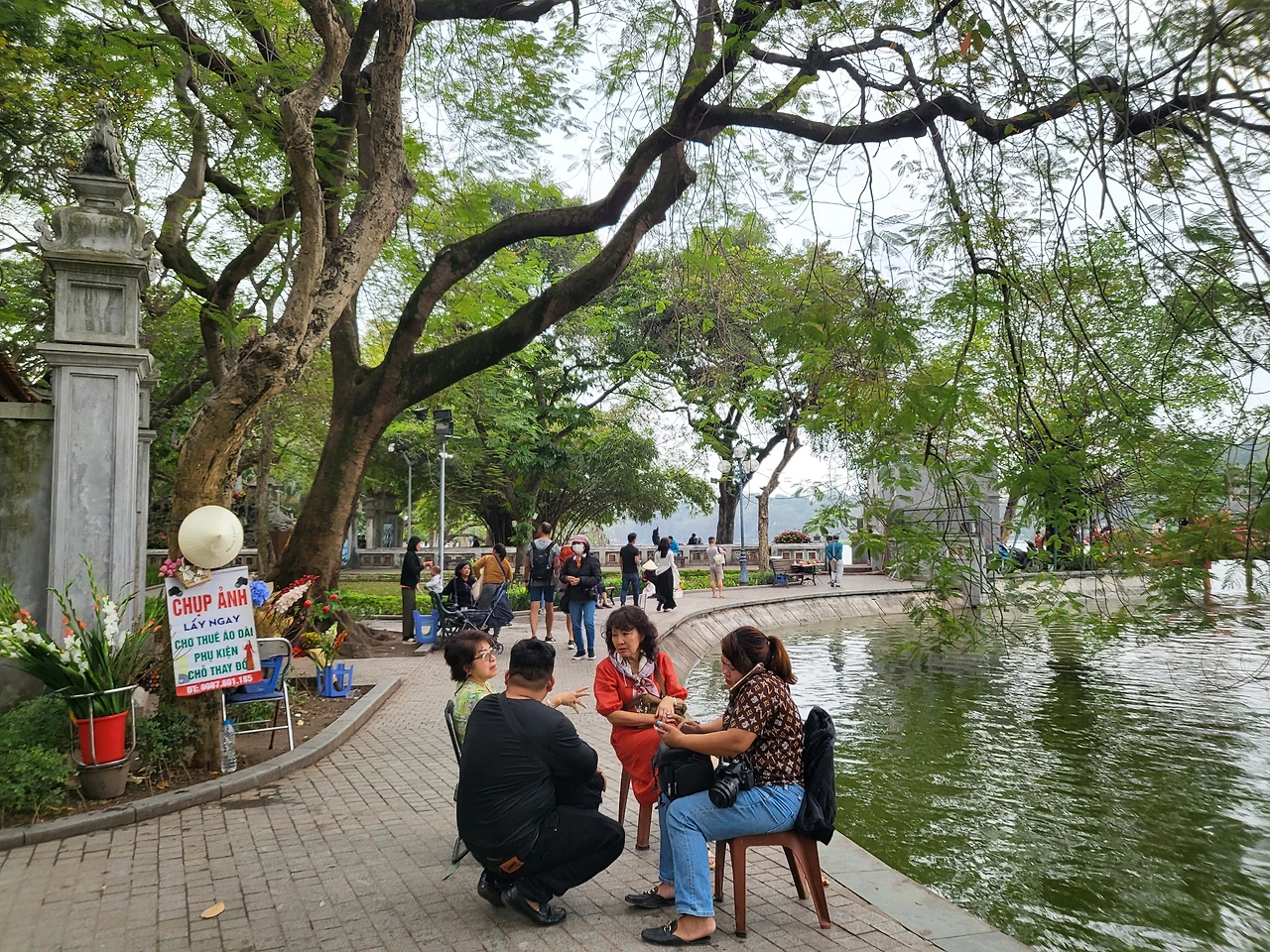 하늘하늘한 아오자이를 차려입고 빨간 꽃가지를 든 아가씨들은 왜 이렇게 많지? 호숫가에서 사진을 찍느라 분주했다. 심지어 은색 반사판까지 들고 다녔다. 걸어갈수록 사진 인파와 자주 마주쳤다. 무슨 시즌인가? 그녀들은 민소매나 끈이 달린 얇은 아오자이를 과감하게 소화했다. 멋을 부리려면 이깟 추위쯤은 아무것도 아니렸다. 메이크업과 헤어 스타일까지 완벽한 그들에게 박수를 보낸다.