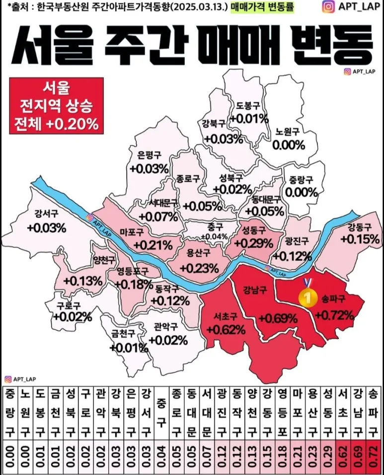 '한국부동산원 주간 아파트 가격 동향'의 매매가격 변동률을 보면, 현재 핵심지에서 시작된 상승이 주변으로 그 온기가 퍼지고 있는 것이 보이지요?