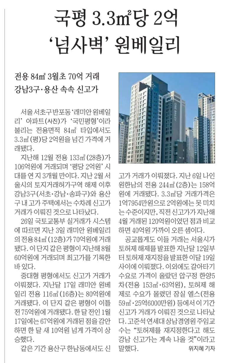 토허제를 해제한 강남의 아파트들은 여전히 신고가를 갱신하고 있었습니다. 취등록세 규제는 여전하고, 공급 절벽 또한 해결될 수 없는 시점 '똘똘한 한 채'의 선호는 당분간 지속될 것 같습니다. 전문가들은 '토지거래해제구역'을 재지정한다 해도 강남 신고가는 계속될 것으로 보고 있습니다.