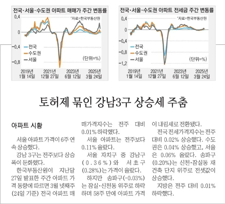 서울아파트 가격은 6주 연속 상승세입니다. 토허제로 묶인 지역들은 일주일간 다양한 반응을 보였는데요.