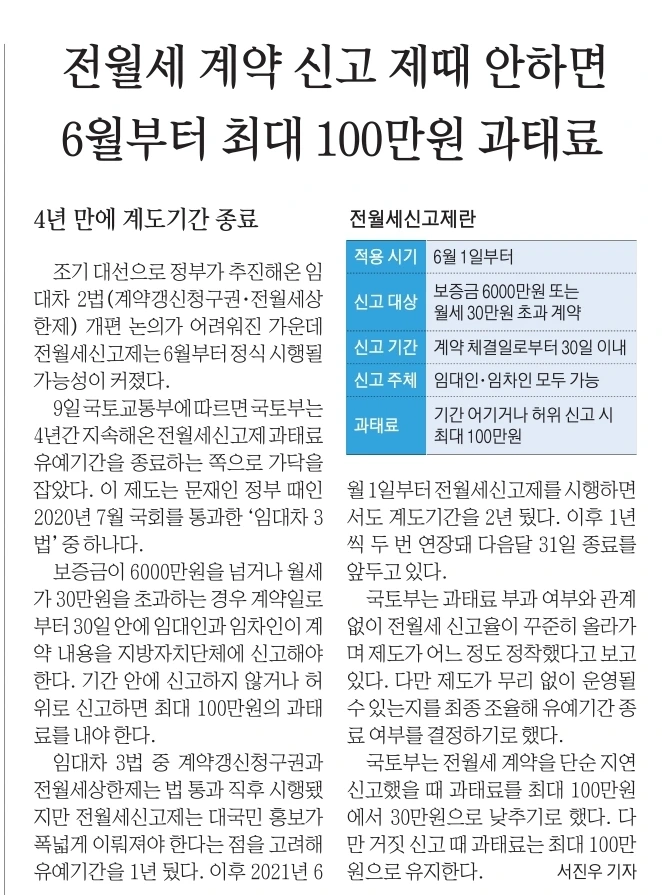 임대차 3법중 하나인 주택 임대차 신고의 계도 기간이 곧 만료 시기를 앞두고 있습니다. 5월 31일까지의 계도 기간이 만료되면, 과태료가 부과될 수 있기 때문에 주의가 필요한데요.