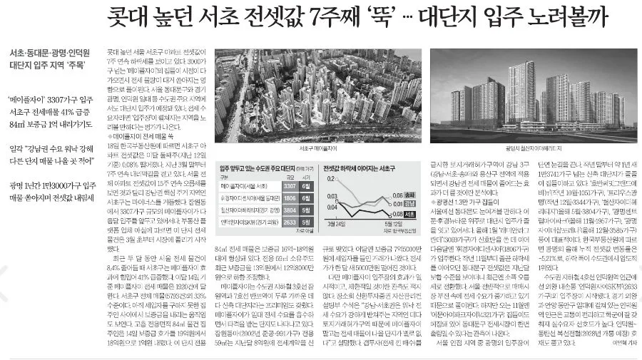 또한 입주물량이 쏟아지며, 전세는 내림세인데요. 서초구도 예외는 아닙니다. 전세수요자라면 입주물량이 많은 지역을 주거지로 노려보는 것도 좋을 것 같습니다.