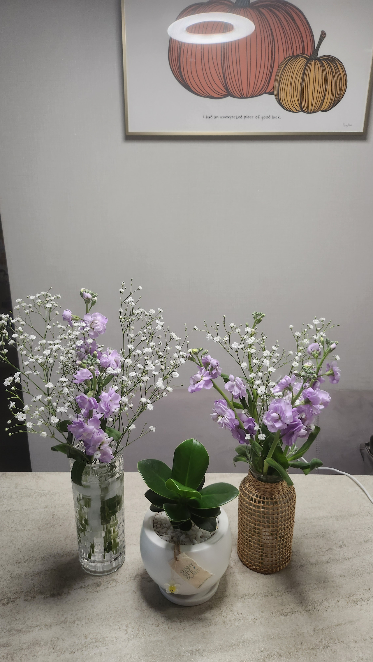 라벤더와 하얀 안개꽃의 조화가 여린 봄을 알리는 것 같이 제법 잘 어울린다.