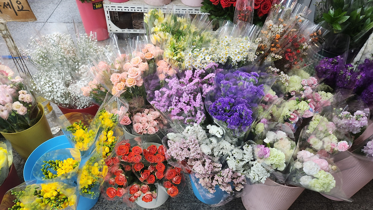 지하철에서 내려 걸어가다 보면 어김없이 커피숍과 꽃집을 지나게 된다. 몇 년간 늘 꽃집 앞을 지나면서도 무심하게 관심조차 주지 않았던 꽃들. 오늘은 그 꽃들의 알록달록한 하모니에 이끌려 잠시 멈춰 바라본다.