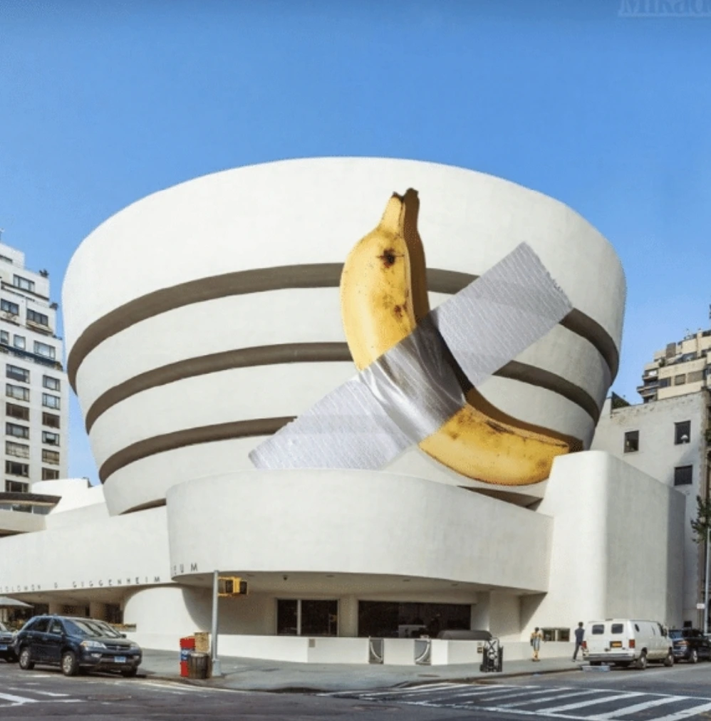 "코미디언"이라는 작품은 개념예술이다. 즉 이 작품을 구매한다는 것은, 아니 구매해서 소유한다는 것은, 전시해 놓은 바나나와 테이프 자체를 사서 소유하는 게 아닌 예술가의 독창적인 아이디어를 소유하는 것이다.