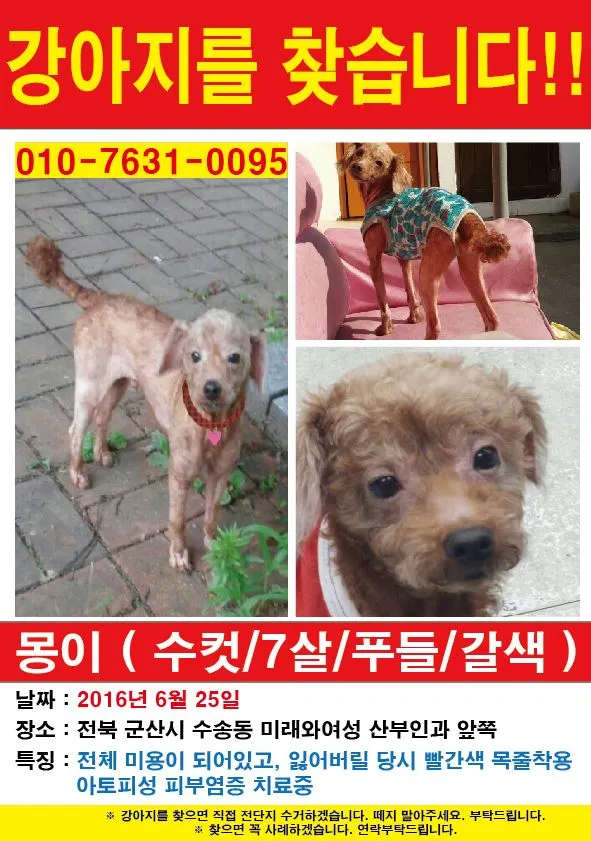 반려견 실종신고차 글을씁니다.