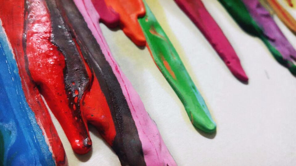 옆에 크레파스와 뒤섞여서 흘러내립니다!