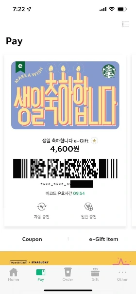 모바일 카드는 어쩌면 정말 극강의 편리성을 담보하고 있고 또 훈훈한 거래라는 측면에서 우리의 사랑을 받고 있다. 나도 최근에 스타벅스 쿠폰과 모바일 카드를 선물로 많이 받았었다. 따라서 커피는 먹고싶지만 현금이 없을 때 스타벅스를 잘 이용하고 있다.
