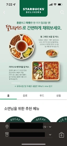 가장 처음의 진입 화면으로서 소비자가 앱에서 취할 수 있는 선택지를 열어준다고 생각했다. 전반적으로 느낀 점은 B2C 서비스라서 그런지 광고가 많았다. 80% 이상이 스타벅스 음료 혹은 프로모션 관련한 것이었고 정작 소비자가 음료 주문 액션을 취할 수 있는 영역은 작아보였다.