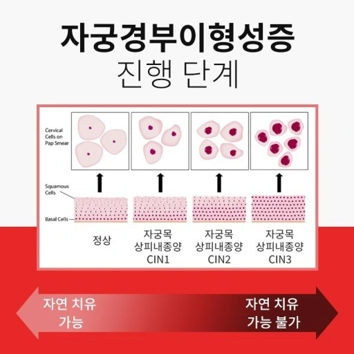 의학적으로는 CIN 1~3단계로 나뉘고, 비정상 세포가 어느 정도까지 상피를 차지했는지에 따라 단계가 달라진다.