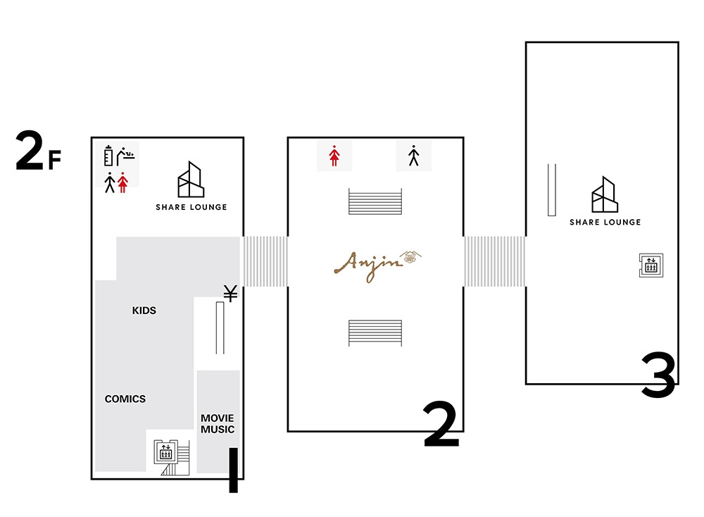 왼쪽으로 가면 쉐어 라운지로 연결되는 에스컬레이터가 있다. 츠타야는 3개의 동으로 구성되어 있지만, 전체가 하나의 연결된 공간처럼 느껴졌다. 계단, 에스컬레이터, 엘레베이터 등 다양한 수단으로 각 층이 연결 되어 있어, 세심하게 설계된 동선 때문일까?