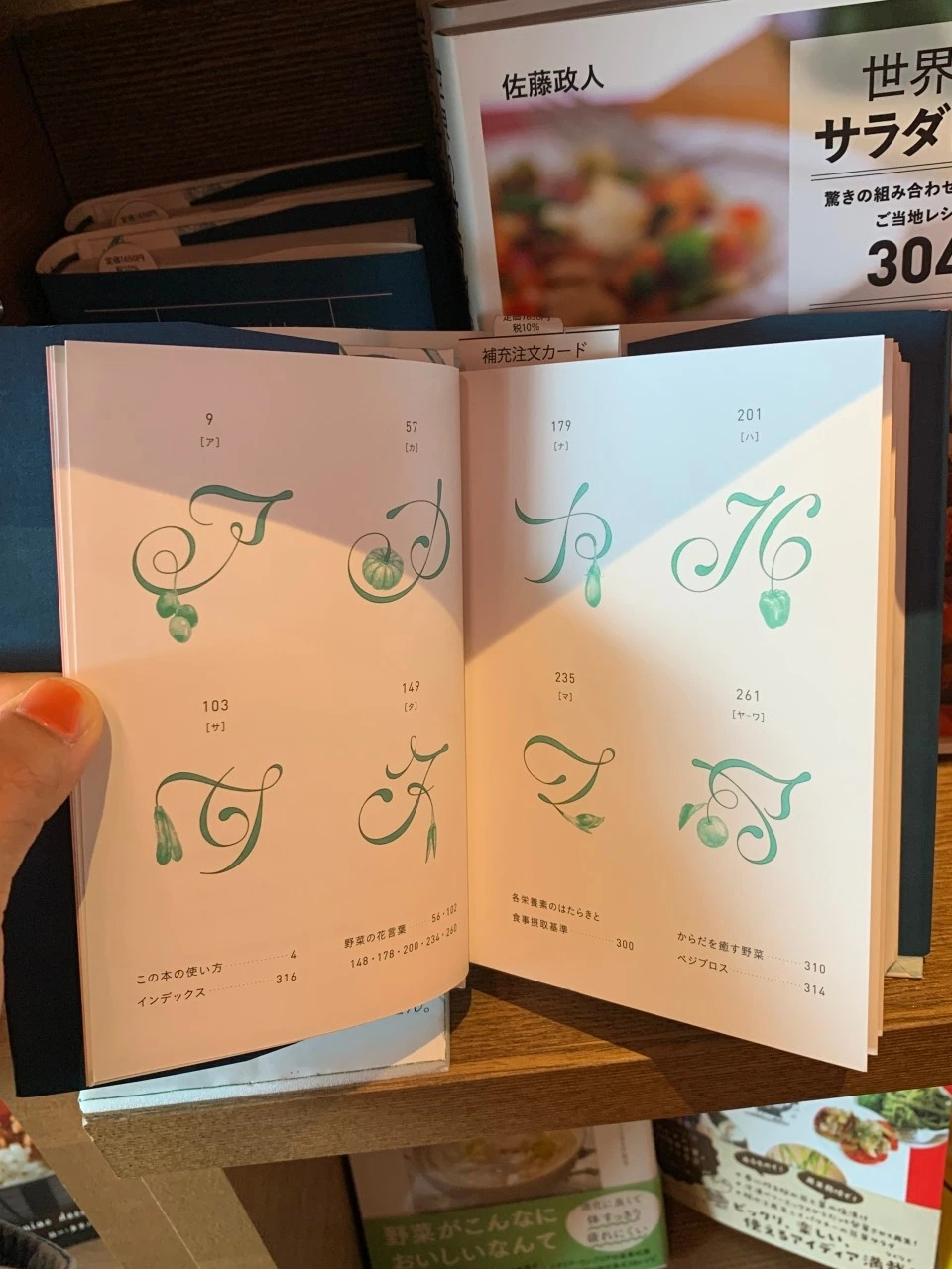 확실히 레시피북에 삽화가 많았다. 그 중 눈에 띈 것은 <Vegetable Dictionary>라는 책인데 식물로 알파벳을 만든 사전이었다. 귀엽다고 느끼면서도 동시에 여러 생각이 들었다. '과연.. 한국에 있으면 이런 책이 팔릴까..?', '왜 이 책을 만들었을까..?', '이건 정말 순수한 창작 욕구로 만든 책 같다..' 현실적인 고민과 함께 이 책의 존재 이유에 대해 생각해보게 됐다. 왜 <굳이> 이런 책을 만들었을까?