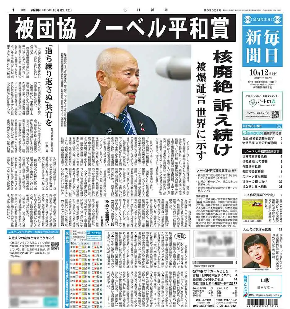 일본의 가장 오래된 신문, 마이니치 신문, 중도적 성향이다.