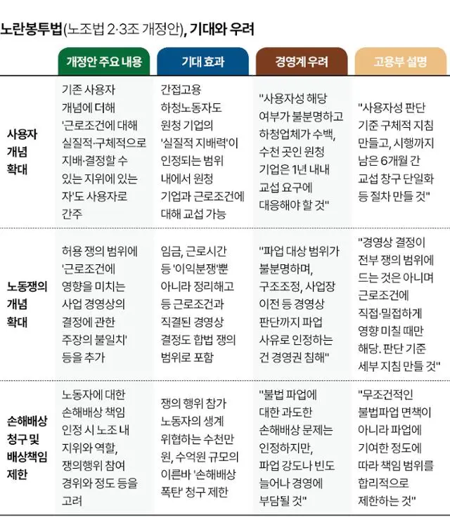 노동자 측에서도 권리 남용 가능성, 과도한 교섭 요구 등으로 인한 현장 혼란이 우려된다.