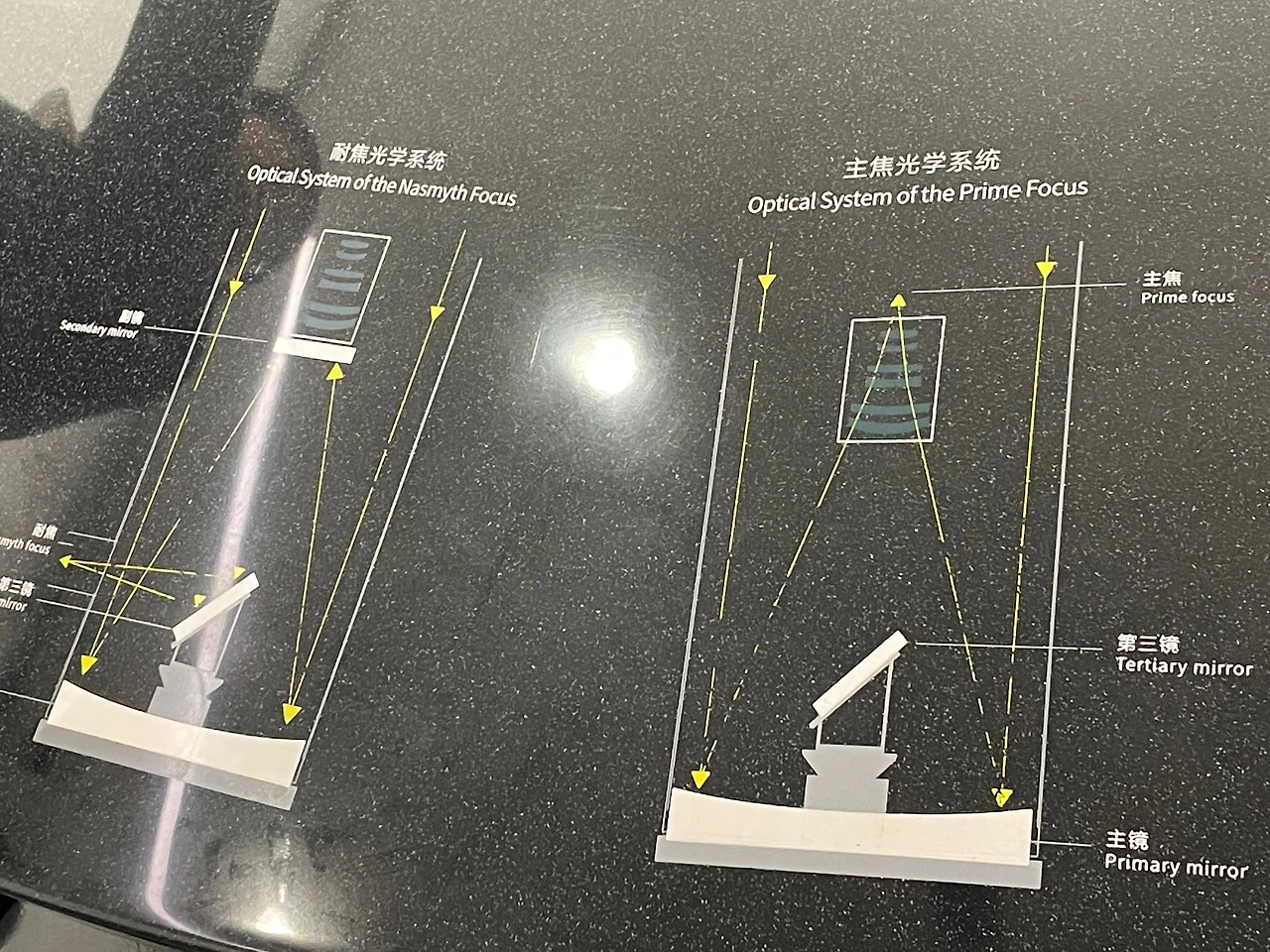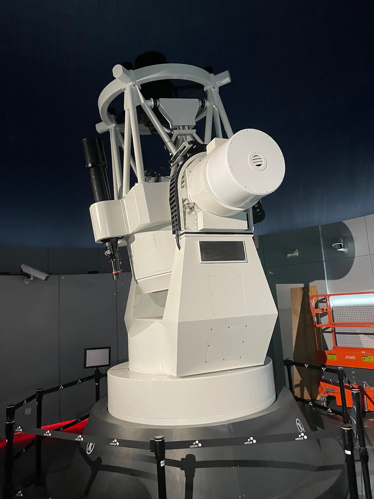야간 관측용 1m 망원경 또한 많은 고려를 한 디자인이 돋보였다. 바로 눈을 대고 관측 가능한 초점 외에도 사진 촬영이 가능한 초점을 따로 두고 있는 점이다. 물론 이런 기능은 우리나라의 몇몇 망원경에에도 구현되어 있는 기능으로, 대표적으로 국립대구과학관 1m 망원경과 국립광주과학관 1.2m 망원경은 사진촬영과 육안관측이 쉽게 전환 가능하다. 위 두 천문대의 망원경과 상하이천문박물관의 1m 망원경의 차이점은. 상하이천문박물관의 망원경의 경우 사진촬영을 위한 카메라를 부경 위치에 두고 있다는 점이다. 이 디자인은 부경을 거치기 전 상태에서 사진촬영용 보정렌즈 광학계를 디자인할 수 있고, 부경의 반사를 거치지 않은 조건이기 때문에 보정렌즈 디자인의 자유도가 다소 높아진다.