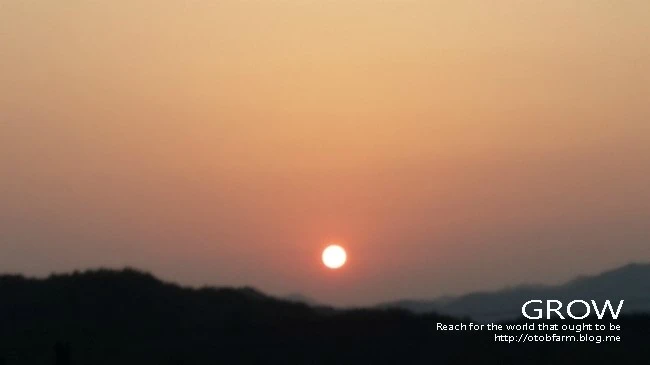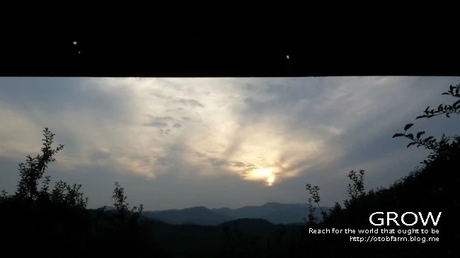저녁 7시쯤 농막에 앉으면 첩첩 히 먼산과 그 너머로 해 지는 모습이 보인다.