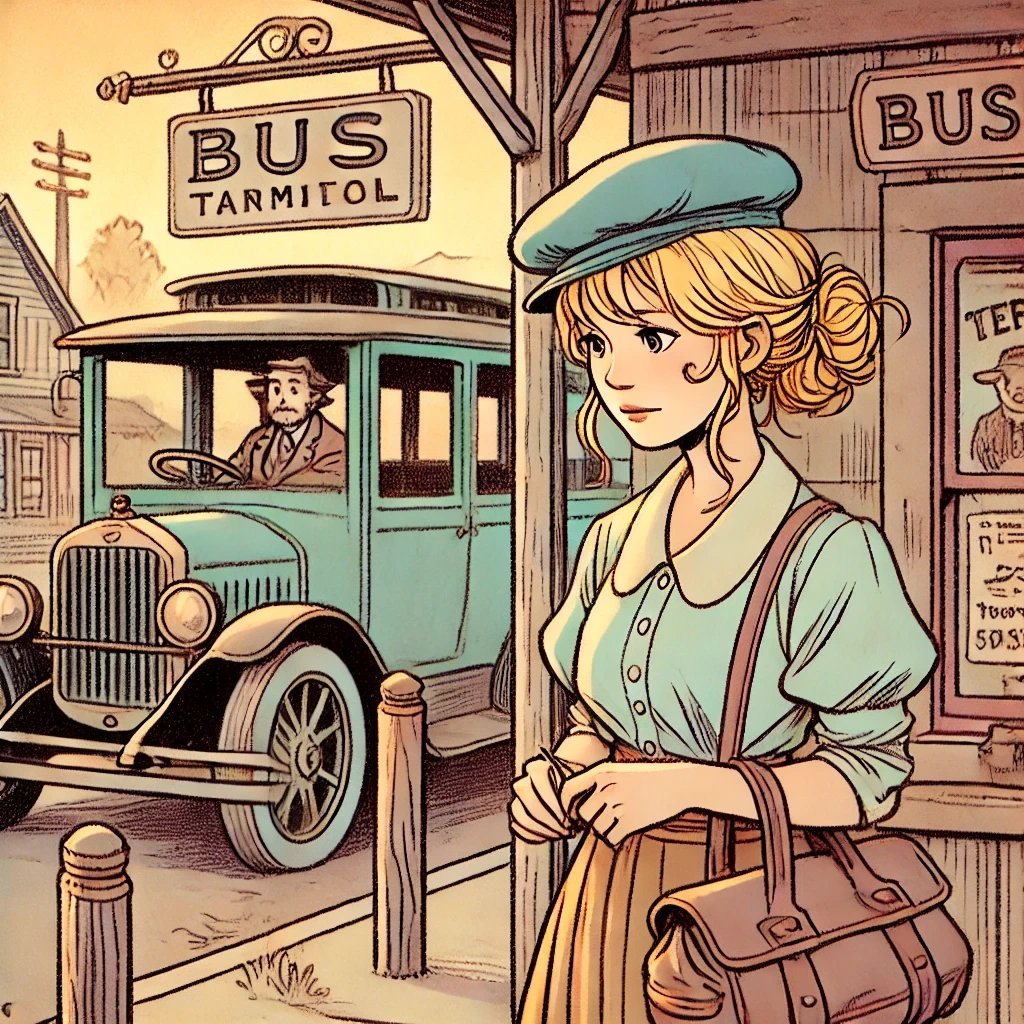 제인은 아주 유능해 보이는 어떤 여직원이 앉아 있는 버스 티켓 판매 창구 앞에 선다.