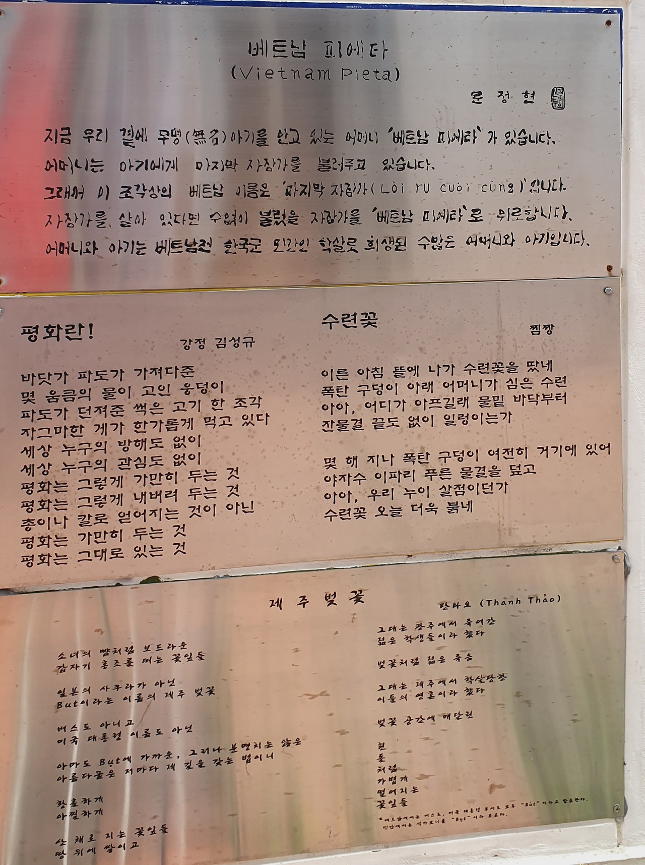 제주에 여행을 하는 분들에게 추천하고 싶은 곳은 제주 43 평화공원이다. 제주의 아픔이 어떤 것인지를 이해할 수 있는 곳이기도 하다. 우리는 학살의 역사를 반성해야 하는 것은 학살이 계속 반복되기 때문이다. 제주 4.3 학살은 보도연맹 학살로 이어졌고, 전쟁이 끝난 후 베트남에서의 학살로 이어졌고, 광주에서의 민중 학살로 이어졌다.