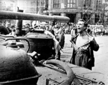 벨벳혁명 때 청년이 탱크를 막아서고 있다.