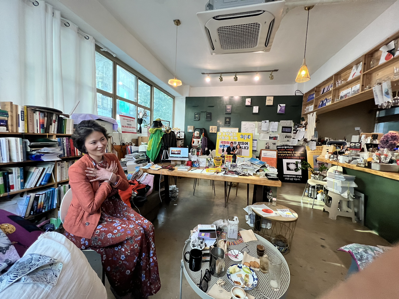 또한, 진양 꽃상가 한편에는 미술전시관이 있다. 우리는 이곳에서 독일에서 활동하던 두 분 작가를 만나게 된다. 또한 작은 골목에는 페미니즘 카페 활동가 및 이곳을 토대로 새롭게 가계를 시작한 젊은 창업가를 만나게 된다. 우리는 폐허처럼 보이는 이곳 곳곳에 많은 사람들이 살아가며 문화를 꽃피우고 있었다.
