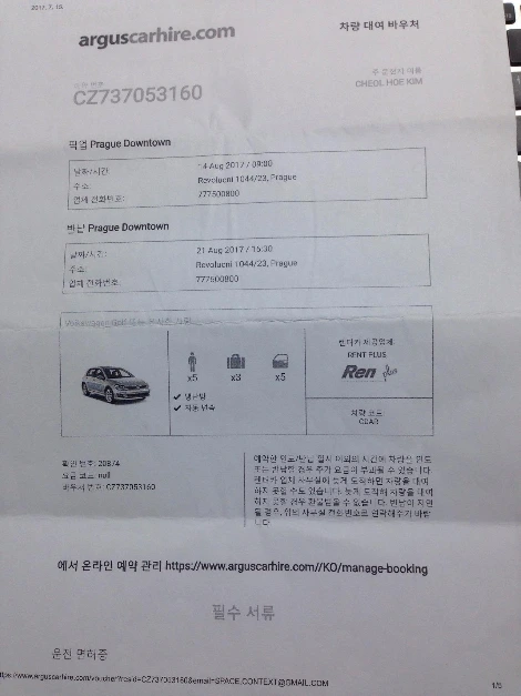 렌트는 서울에서 직접 인터넷으로 예약하고 예약증을 출력해서 가져갔다.