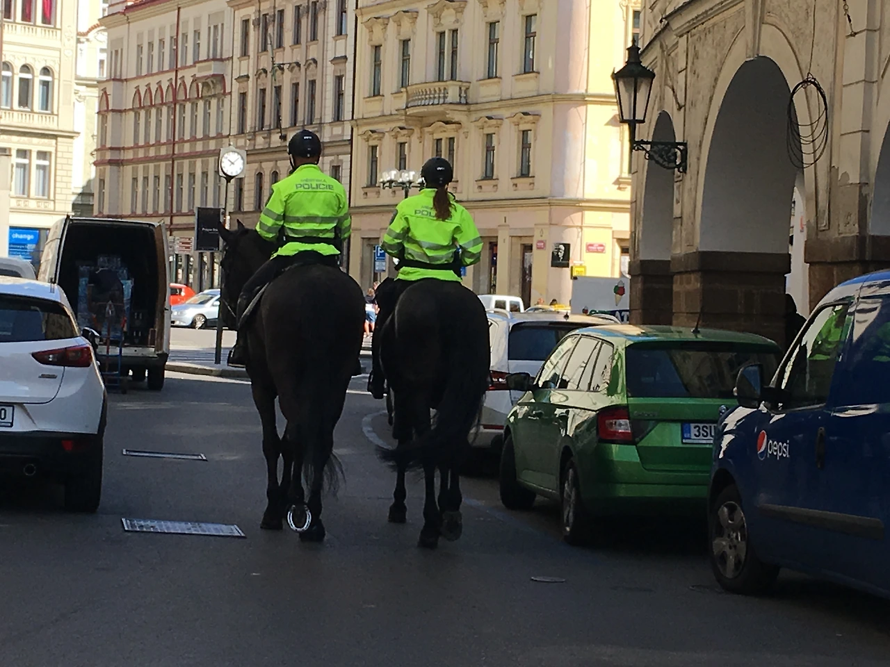 매장은 구글로 비교적 숙소와 가까운 위치한 곳이었다. 따라서 우리 가족은 짐을 싸서 렌터카 매장까지 걸어갔다. 우리 가족은 매장으로 가는 길 역시 구글 지도를 통해 안내받고 찾아갔다. 가는 도중 말을 타고 다니는 경찰을 만났다. 말을 타고 다니는 이유는 좁은 프라하 시내를 다니기 효율적이기 때문인 것 같다.