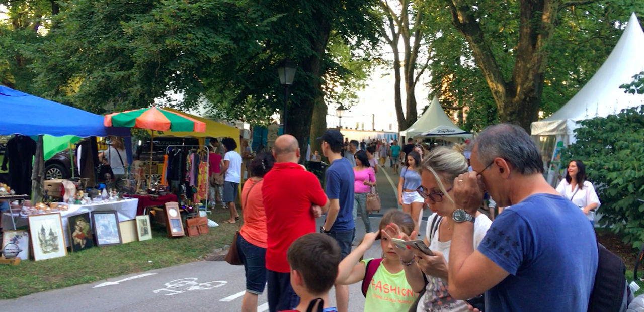우리는 이곳 벼룩시장에서 하는 행사를 보기로 했다.
