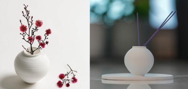 이번 전시회에서는 숨겨있는 작품이 있습니다. 전시장 곳곳에 있는 작지만 아름다운 달항아리와 향이 전시장을 특별한 공간으로 만들어 줍니다. 이 작은달항아리는 우하영 대표께서 고향 통영의 버려진 굴껍데기를 재활용하여 만든 작품으로 달항아리의 제작과정에 대한 이야기를 제작해 온 우하영 대표님과 달항아리를 만들게 된 배경 등 삶의 이야기를 나누었습니다.