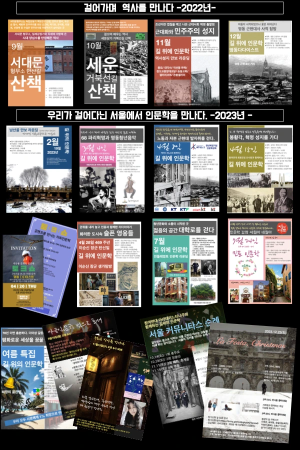 2022년부터 2023년 동안 17회 이상 행사를 가지면서 걸어온 행사포스터를 전시합니다.