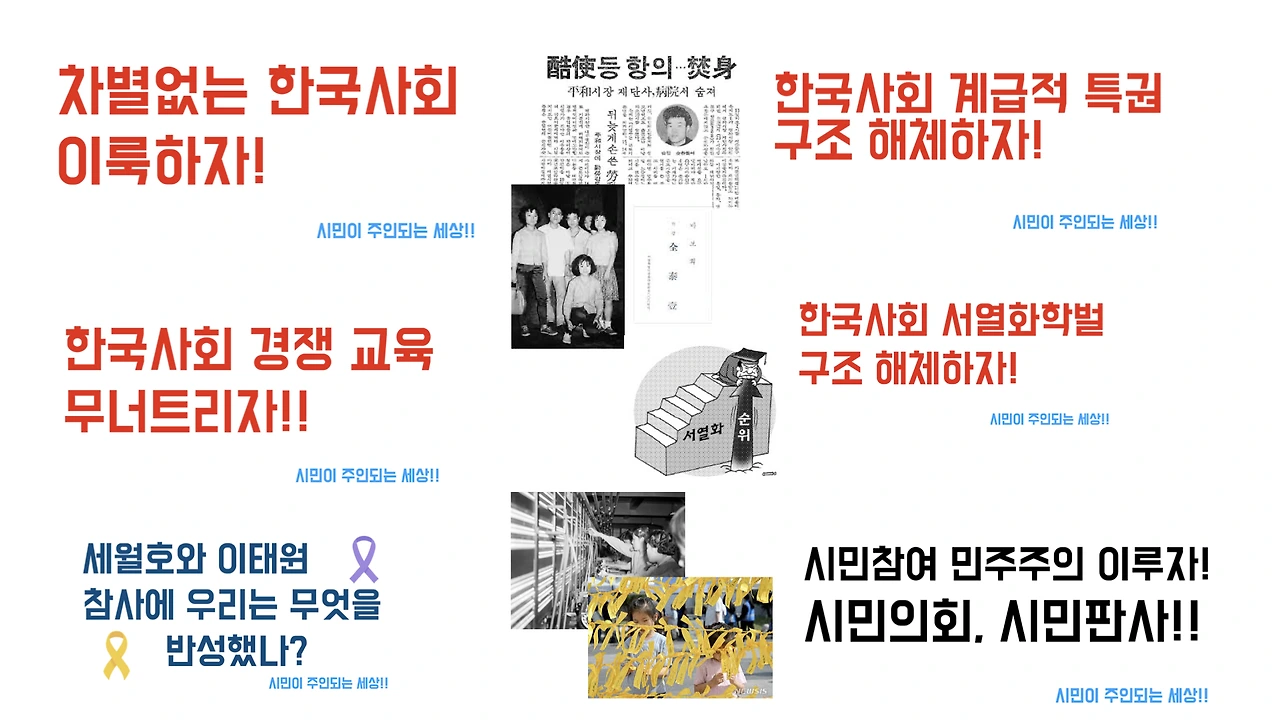 사회는 성장하고 변화되어야 합니다. 그러나 우리는 외형만 바뀌었을 뿐 본질적 구조의 변화는 없습니다.