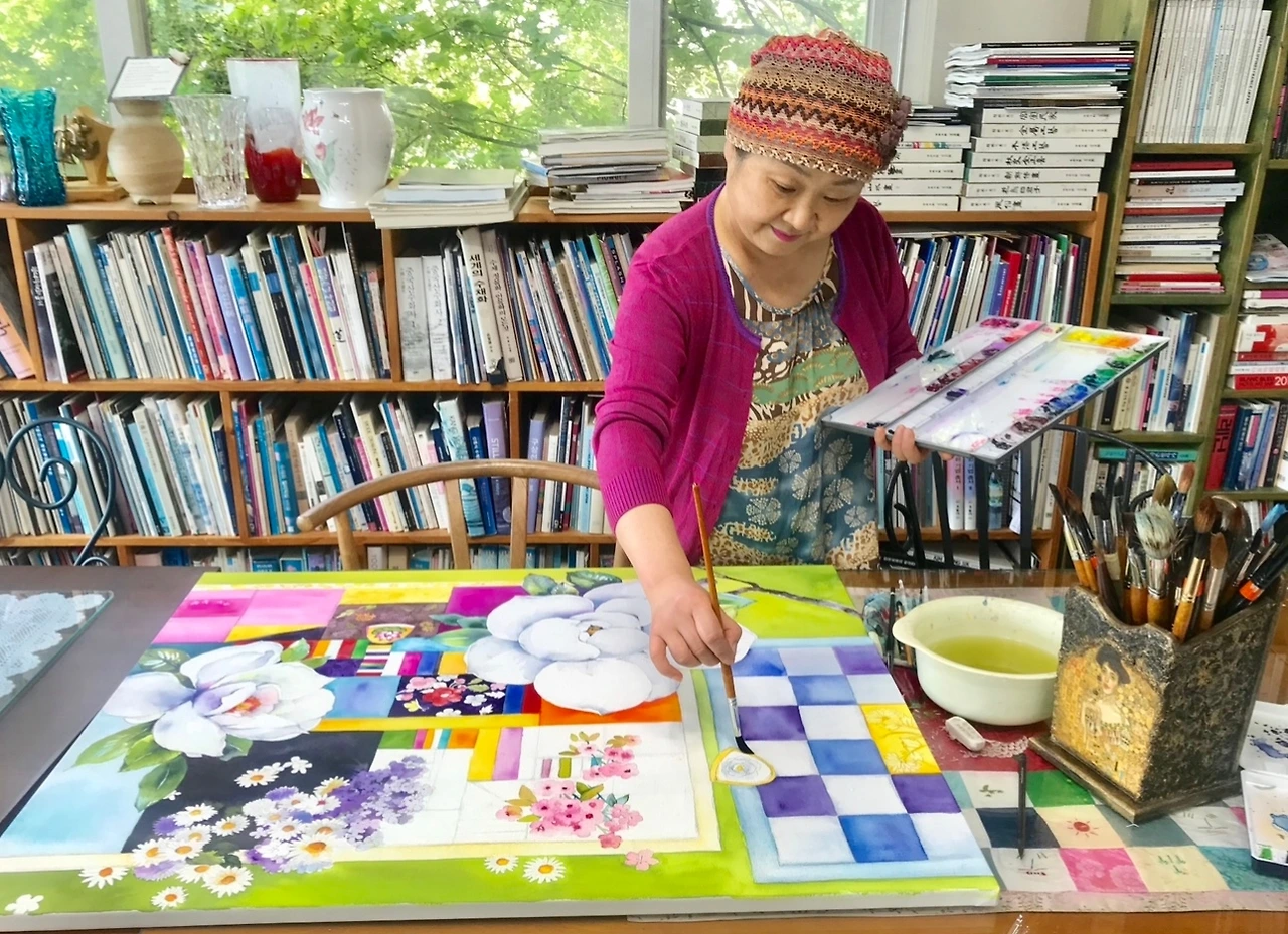 김 작가는 들꽃의 생기와 향기를 담기 위해 공부하고 연구하기 시작했다. 관련 전문서적은 물론 국내·외 여행을 하면서 꽃마다 가지고 있는 특성을 이해하려고 노력했다. 꽃집조차 모르는 꽃을 알 정도로 들꽃 전문가가 된 김 작가는 꽃에 자신만의 개성을 더한 배경을 완성시킴으로써 독특한 작품을 완성했다.