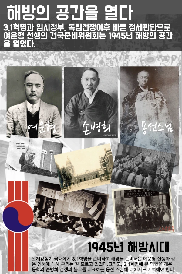명동이 교류의 공간이었다면 종로 지역에는 독립운동과 해방을 맞이하여 변화 열망이 들끓던 공간이기도 합니다. YMCA와 승동교회, 대각사, 천도교 가 모인 곳은 3.1 혁명을 준비하고 실행해 온 본산지라고 할 수 있습니다. 일제강점기 손기정 선생이 베를린올림픽에서 마라톤 우승을 하고 이를 보도하는 여운형 선생의 조선중앙일보에서 일장기를 지우고 보도한 사건은 매우 유명한 사건입니다. 종로에는 이를 주도했던 여운형 선생의 조선중앙일보 건물도 있습니다. 여운형 선생은 일제 패망을 예상하고 해방에 대한 준비를 위해 건국준비위원회를 만들기도 했습니다. 우리는 서울이라는 공간에서 끊임없이 해방의 순간까지 노력해 온 지식인들의 삶을 만날 수 있습니다.