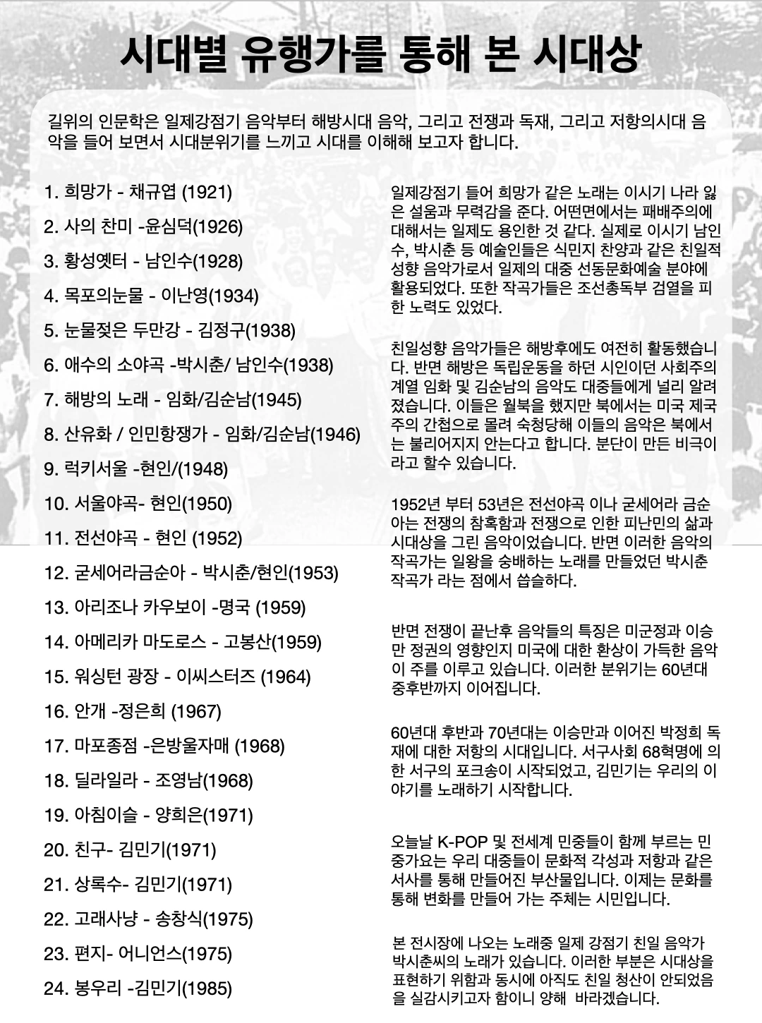 그리고, 시대별 음악을 통해서 그 시대를 살아가는 사람들의 애환을 느끼는 시간이었습니다