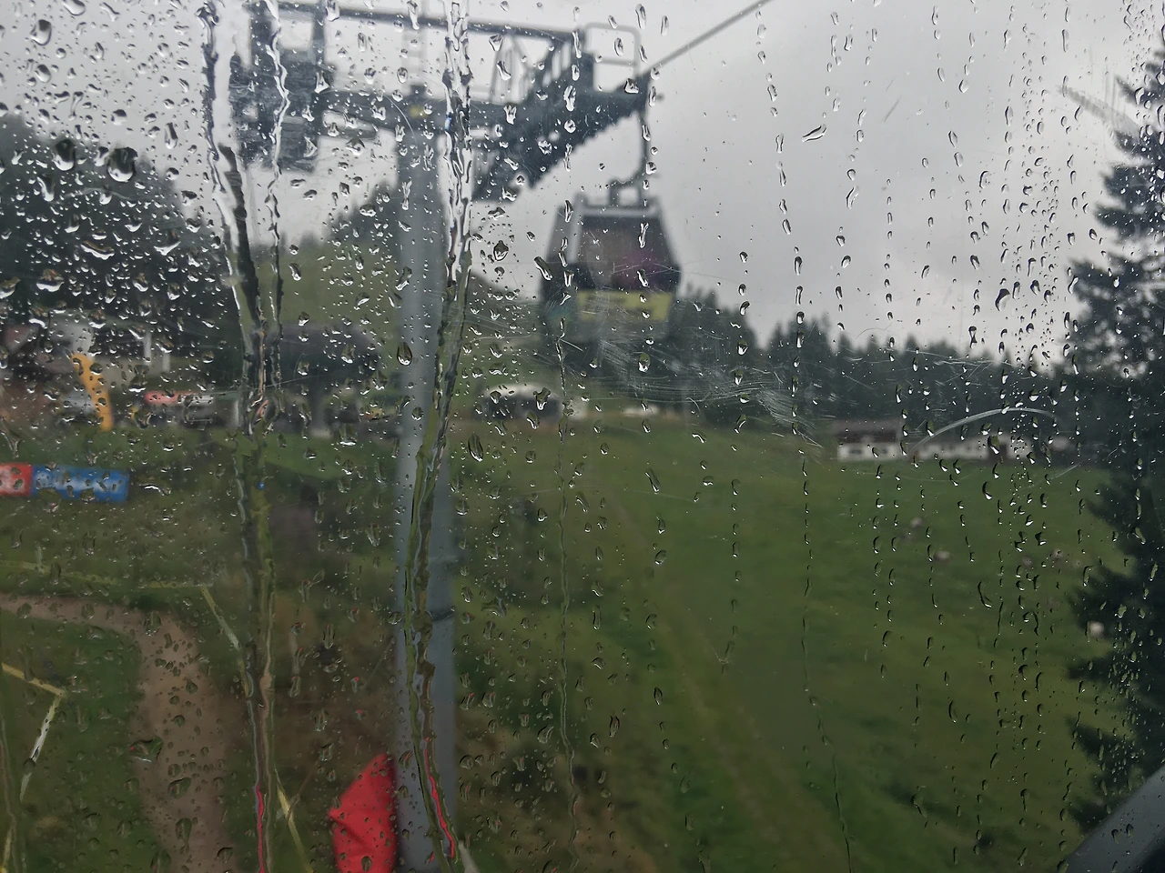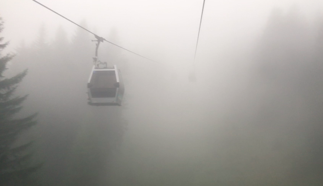 비가 오는 중에도 케이블카는 운행이 되었다. 하지만, 안개로 앞이 잘 보이지 않았다. 그러나 산아래로 자전거를 타고 산을 오르고 내리는 사람들이 보인다. 오늘 산악자전거 대회를 하는 것으로 보였다. 아마 여름에는 산악자전거를 타거나 하이킹을 하고, 겨울에는 스키를 타는 것이 이곳 매력인 듯하다.