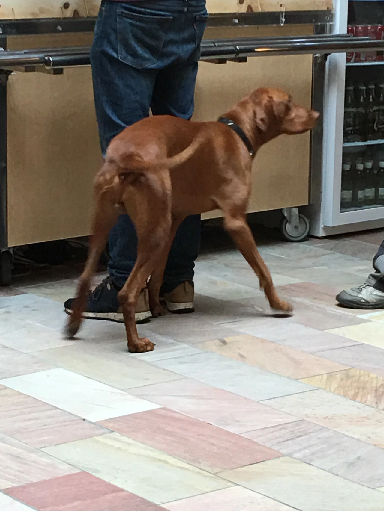 식당에서 개를 키우지만 사람들에게 위협을 주지 않는다.