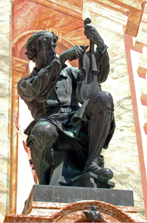 그리고 이곳에서 가장 높은 건물은 성 페테로 파울 성당으로 그 앞에는 작은 동상이 있는데, 바이올린을 만드는 장인의 모습이다. 이 작은 동상의 주인공은 마티아스 클로츠(Matthias Klotz : 1653-1743)라는 분으로 독일 바이올린의 아버지로 불리는 인물이다.