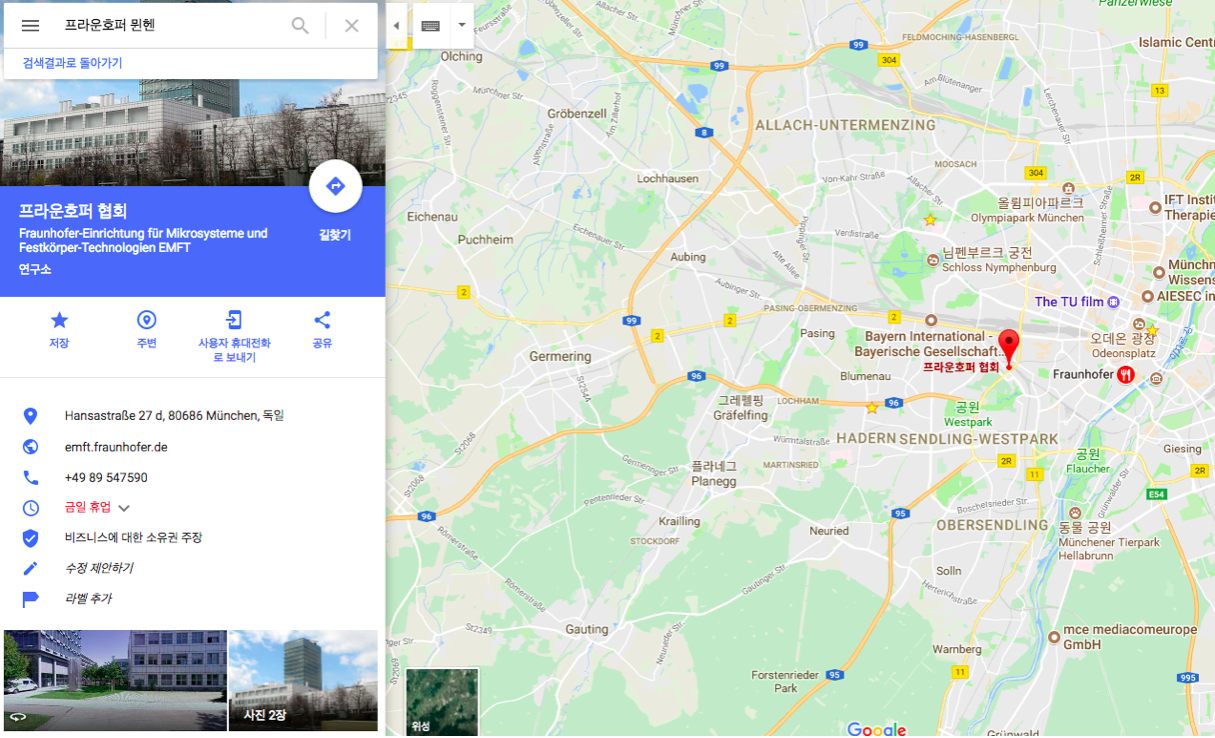 뭰휀 시내의 프라운호퍼 연구소 지도