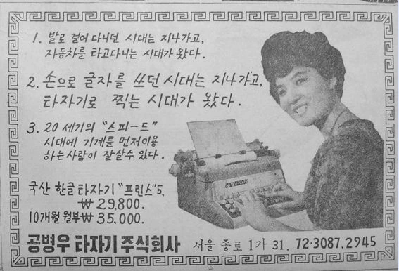 1960년대 공병우 타자기 신문광고