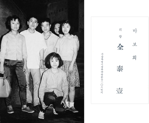 전태일이 미싱시다 소녀들과 (전태일재단)