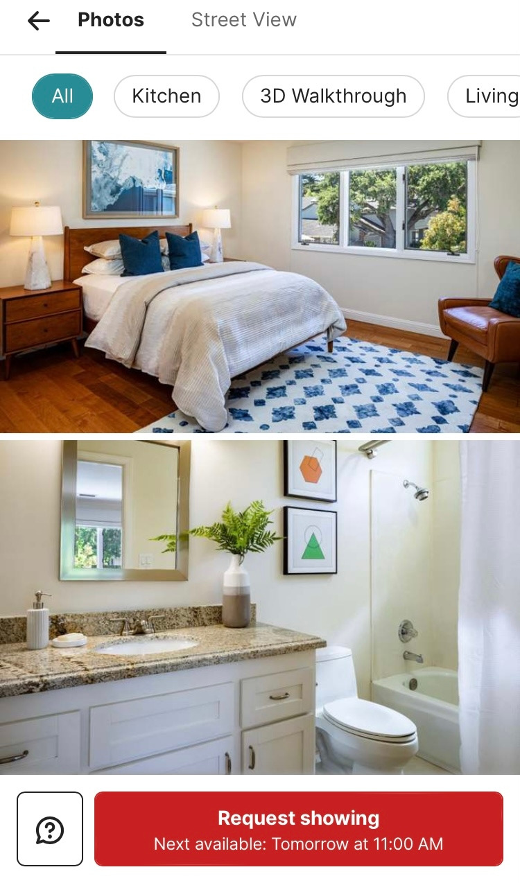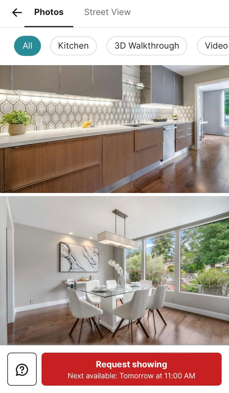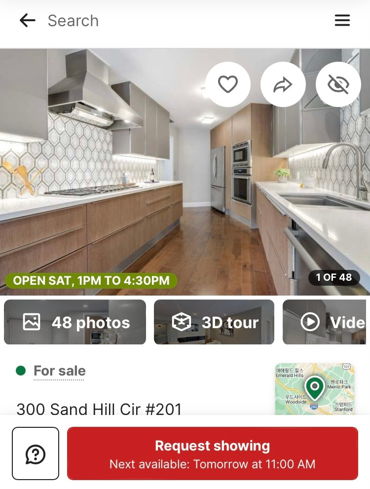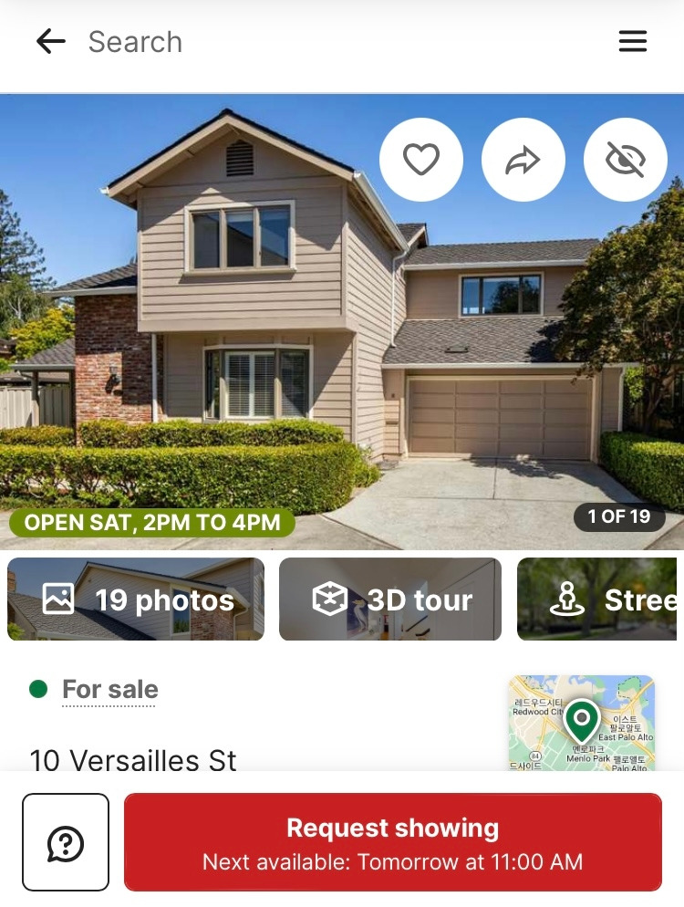 한국과 다르게 미국은 사진이 거짓말을 못한다고ㅎㅎ 온라인으로 포스팅되어 있는 매물 사진들이 사실 그대로 옮겨놓은 거라 믿어도 된다는 점을 이번 기회에 두 눈으로 확인할 수 있었다. 부동산앱은 REDFIN을 추천해 주셨고 Showing 가능한 곳 중 두 군데를 골라 둘러보았다.